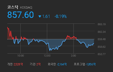 KOSDAQ : 857.60 (-0.19%)