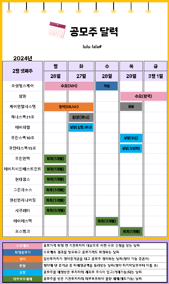 24년 2월 4주 차 공모주 일정에 대해 정리한 내용을 마치겠습니다.!