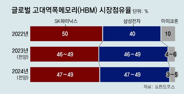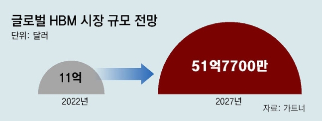 HBM은 기존의 D램을 여러 개 쌓아 데이터 저장 용량과 처리 속도를 끌어올린 고성능·고효율 메모리 반도체다. 일반 D램보다 3∼5배가량 비싸다. AI 시대를 맞아 저장·처리해야 하는 데이터 용량이 기하급수적으로 늘어나면서 HBM은 엔비디아나 AMD의 AI 반도체 구동을 뒷받침하기 위한 필수 요소가 됐다. 가트너에 따르면 글로벌 HBM 시장 규모는 2022년 11억 달러에서 2027년 51억7700만 달러로 성장할 것으로 전망된다.