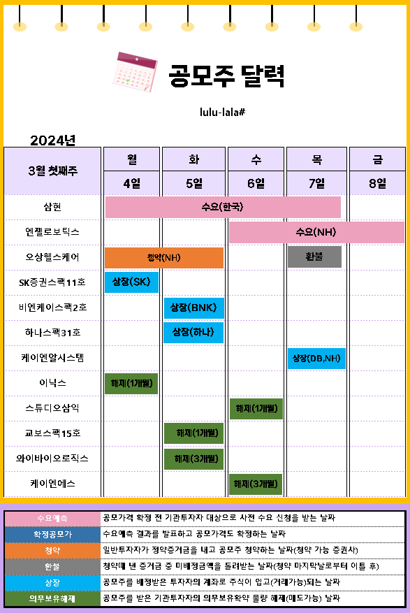 24년 3월 1주 차 공모주 일정에 대해 정리한 내용을 마치겠습니다.!