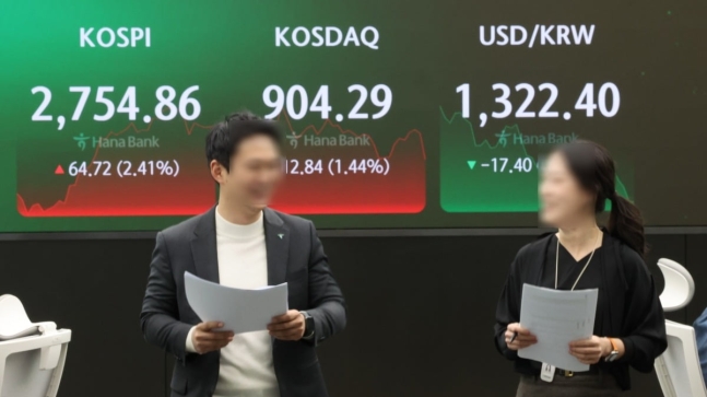 21일 코스피지수가 전거래일 대비 64.72포인트(2.41%) 뛴 2754.86에 거래를 마쳤다. 지수가 종가 기준 2750선을 웃돈 건 2022년 4월 5일(2759.20) 이후 약 2년 만이다. 외국인과 기관의 강한 순매수가 이어진 덕이다.
