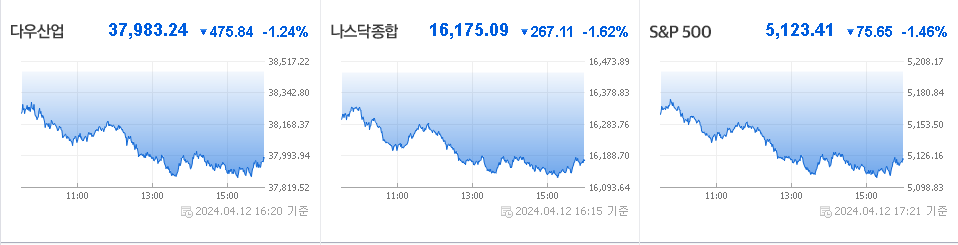 24년 04월 12일 뉴욕증시 및 주요 뉴스를 공유하였습니다.!!