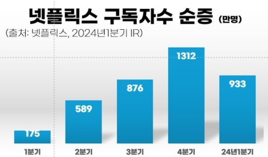 넷플릭스는 계정 공유 단속의 효과로 1분기 유료 구독자가 예상치 459만 명의 2배 가까운 933만 명 증가했다고 밝혔다. 넷플릭스가 밝힌 1분기 순이익은 52억 달러로 예상치 45억 2천만 달러를 넘어섰고, 매출도 93억 7천만 달러로 예상 92억 8천만 달러보다 높았다.