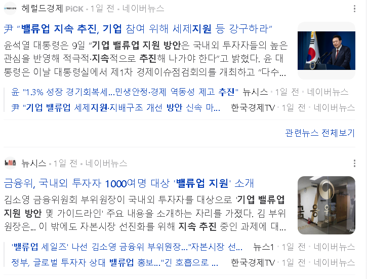 # 윤대통령, 기업 밸류업 지원 방안 지속 추진 발언에 저PBR 강세
