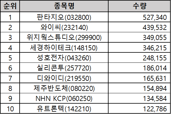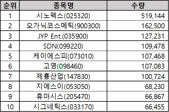 1. 코스닥 외국인 순매수 상위종목 Top10(수량기준)