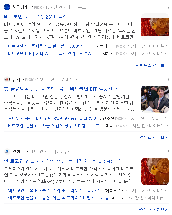 비트코인 가격 이더리움 현물 ETF 미국 증권거래위원회 SEC의 승인을 받을 수 있는 낙관론에 따른 것으로 분석 23일 SEC, 이더리움 현물 ETF신청에 대한 결정 발표 예정 블룸버그 인텔리전스 ETF 분석가 에릭 발추나스와 동료 제임스 세이파르트가 이더리움 현물 ETF 승인 확률을 25%에서 75% 로 올리면서 급등