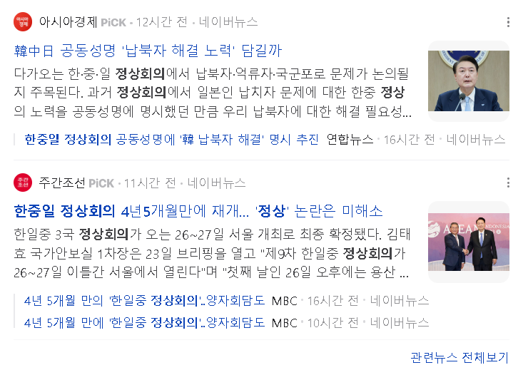 한,중,일 정상회의가 26~27일 양일간 서울에서 진행