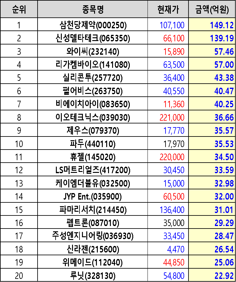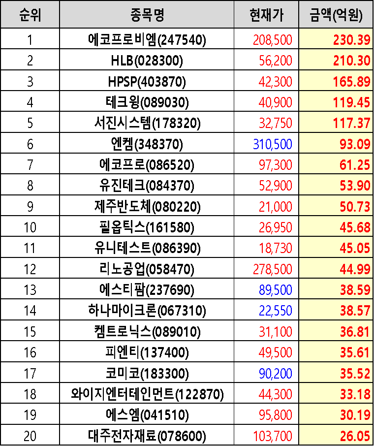 코스닥 외국인 순매수 상위종목(금액기준) Top 20