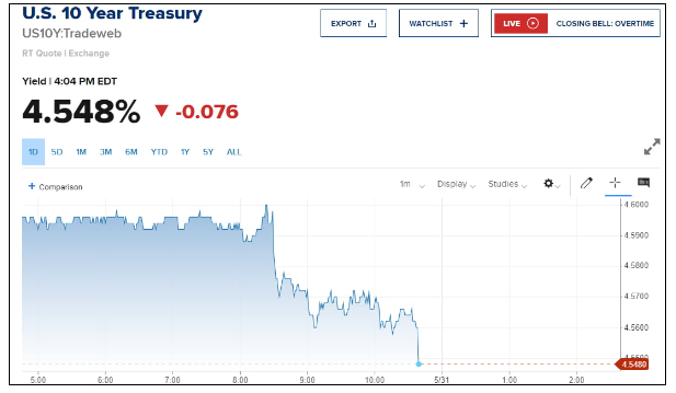 반면 낮은 PCE 인플레이션이 나오면 10년물은 연 4.5% 아래로 떨어지고 9월 금리 인하 관측도 강해질 것입니다. 모건스탠리의 크리스 라진 이사는 "개인의 핵심은 여전히 인플레이선과 금리다, 내일 PCE 물가가 다음주 금요일 5월 고용보고서가 나올 때까지 시장 심리를 지배할 수 있다"라고 말했습니다.