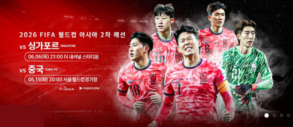 2026년 북중미 월드컵 예선 경기로 싱가포르와 중국전이 연달아 예정되어 있습니다.