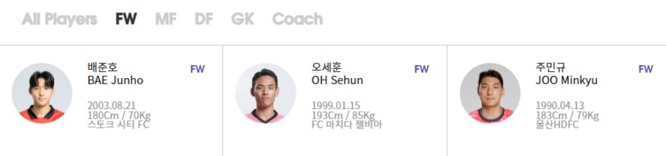 안타깝게도.. 김민재 선수, 설영우 선수는 리그에서 부상을 당했는데, 아직 회복이 안된 상황인가봅니다..