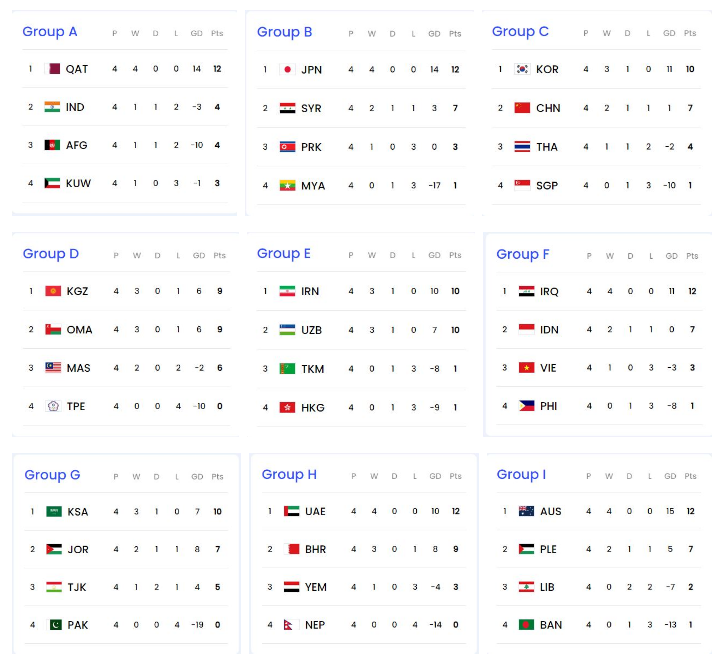 아시아 조별리그 순위