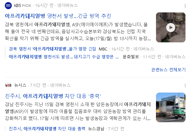 2만 4천여 마리를 사육하는 대규모 농장 올 들어 1월 영덕에서 첫 발생 이후 경기 파주와 강원 철원에 이은 전국 네 번째 방역 당국은 해당 농장의 돼지 2만 4천여 마리를 모두 매몰 처분하고, 반경 10km 안에 있는 농장 5곳의 돼지 만 천여 마리에 대한 정밀 검사 진행