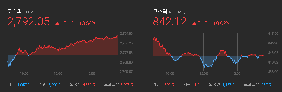▣ KOSPI : 2,7922.05 (+0.64%)