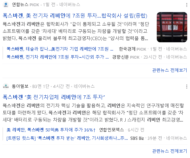 ☞ 독일 폭스바겐, 테슬라 리비안에 7조원 투자