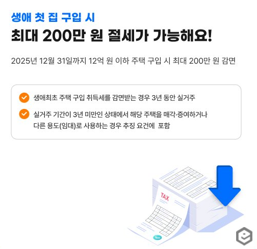 1. 생애 첫 집 구입 시, 최대 200만 원 절세