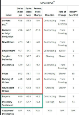 ISM 서비스가 4년 만에 최저 수준으로 하락.