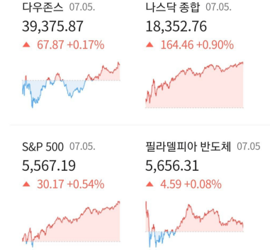 7월 5일(금) 저녁에 있었던 미국증시에 대해 간단히 정리하여 브리핑 진행하겠습니다.