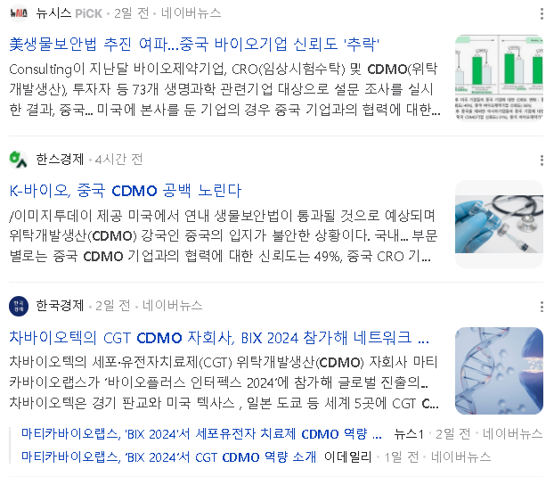 - 생물보안법안, 미국 의회가 선정한 해외 적대국의 우려 바이오 기업과의 거래 제한하는 법안으로 계약 및