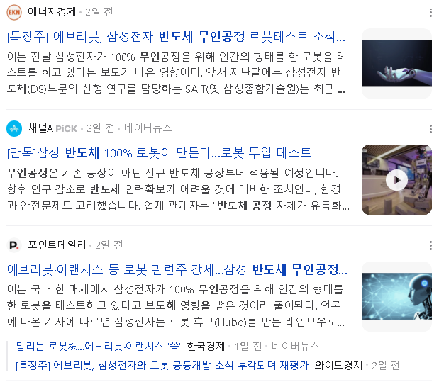 - 국내 한 매체는 유독화학물질 많은 반도체 공정 과정에서 휴머노이드 로봇 투입위해 테스트