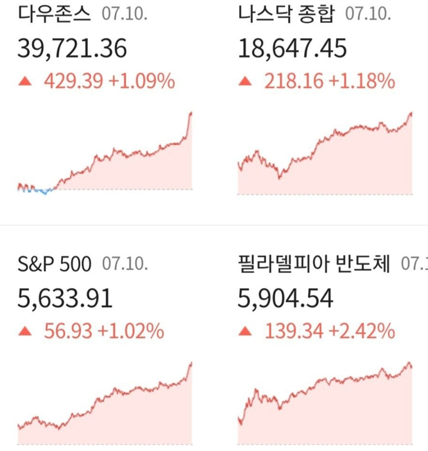 7월 10(수) 저녁에 있었던 미국증시에 대해 간단히 정리하여 브리핑 진행하겠습니다.