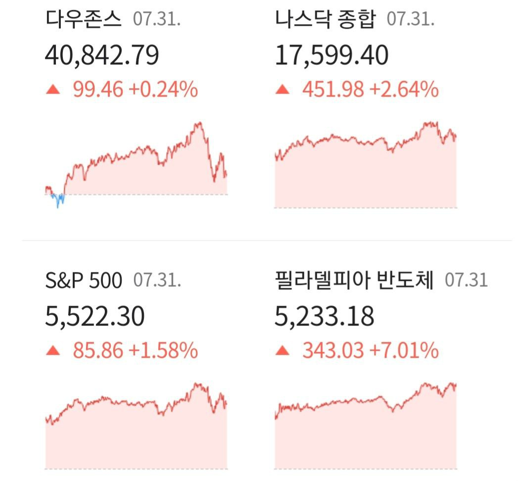7월 31일(수) 저녁에 있었던 미국증시에 대해 간단히 정리하여 브리핑 진행하겠습니다.
