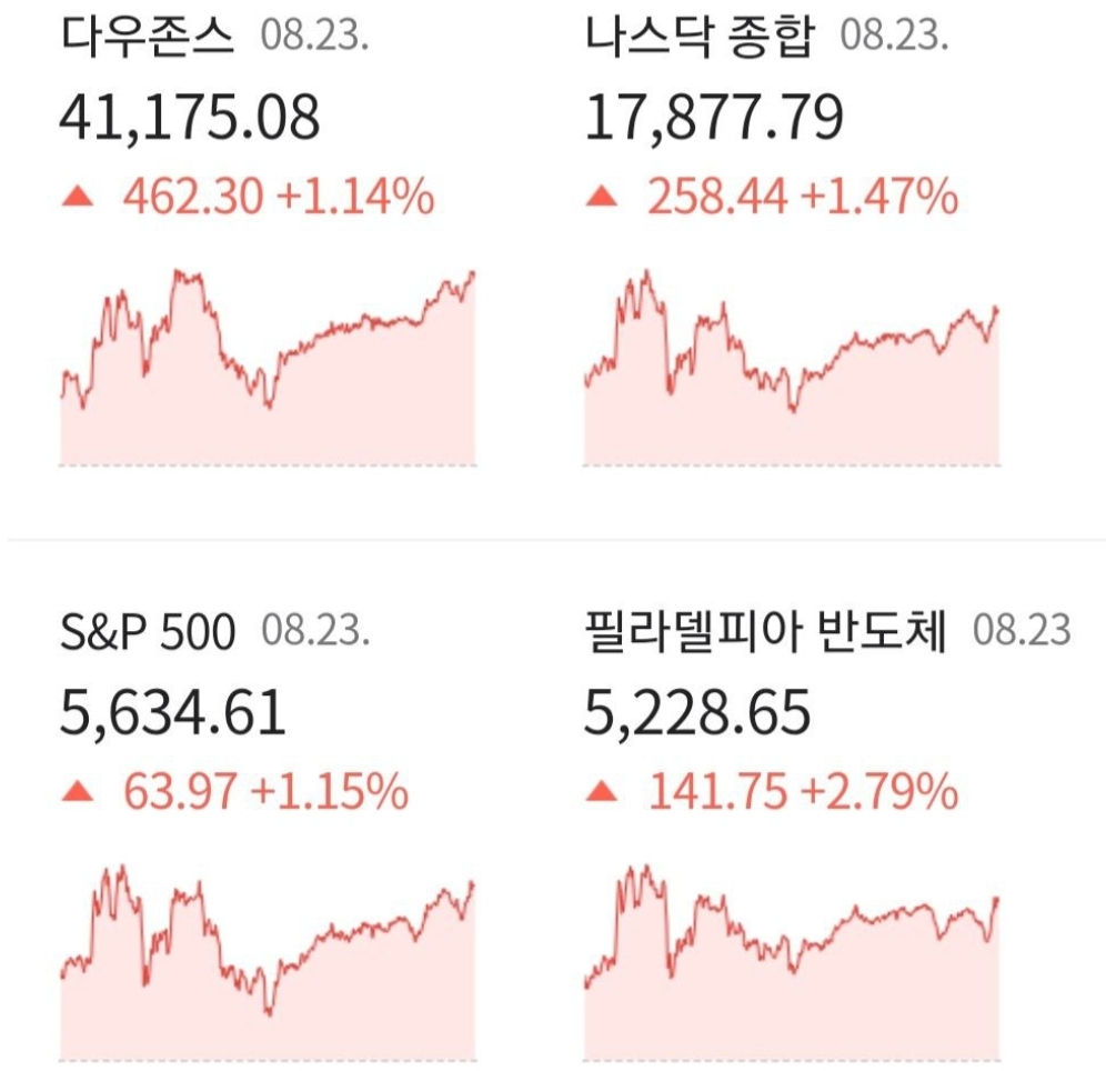 8월 23일(금) 저녁에 있었던 미국증시에 대해 간단히 정리하여 브리핑 진행하겠습니다.