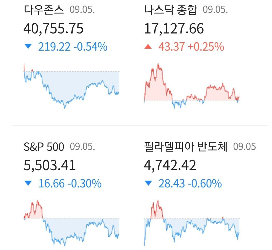 9월 5일(목) 저녁에 있었던 미국증시에 대해 간단히 정리하여 브리핑 진행하겠습니다.