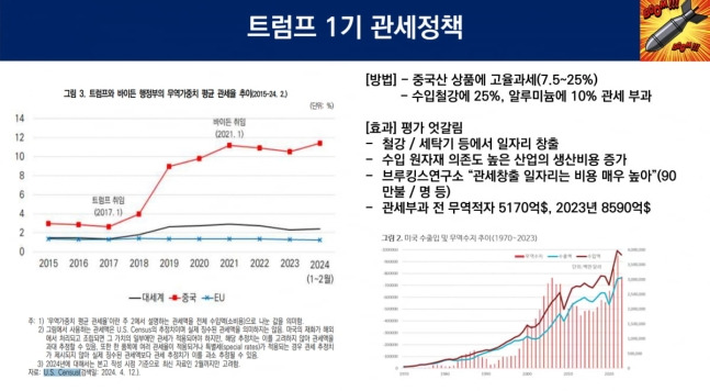 그런데 한 가지 생각해 볼 게 있습니다. 트럼프가 대통령이 된 다음 관세를 물리겠다고 하면 그냥 물릴 수 있는 걸까요? 1기 때 대 중국 관세를 올렸으니까 이번에도 그냥 그렇게 하면 되지 않을까 생각하실 수 있지만 그게 그렇지가 않습니다.