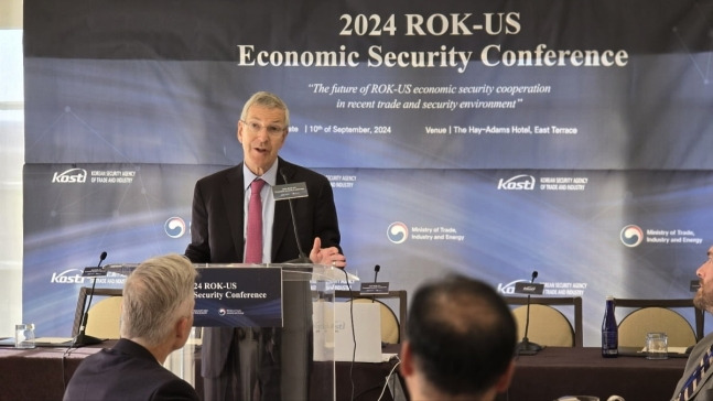 앨런 에스테베스 상무부 산업안보차관은 10일(현지시간) 오전 워싱턴DC 헤이애덤스 호텔에서 한국 무역안보관리원(옛 전략물자관리원·KOSTI)이 주최한 '2024 한·미 경제안보 콘퍼런스'의 기조연설자로 나서 이ㅊ같이 말했다.