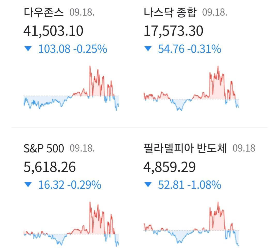 9월 18일(수) 저녁에 있었던 미국증시에 대해 간단히 정리하여 브리핑 진행하겠습니다.