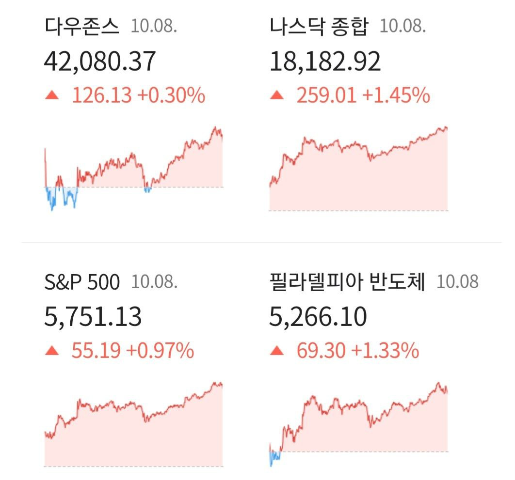 10월 8일(화) 저녁에 있었던 미국증시에 대해 간단히 정리하여 브리핑 진행하겠습니다.