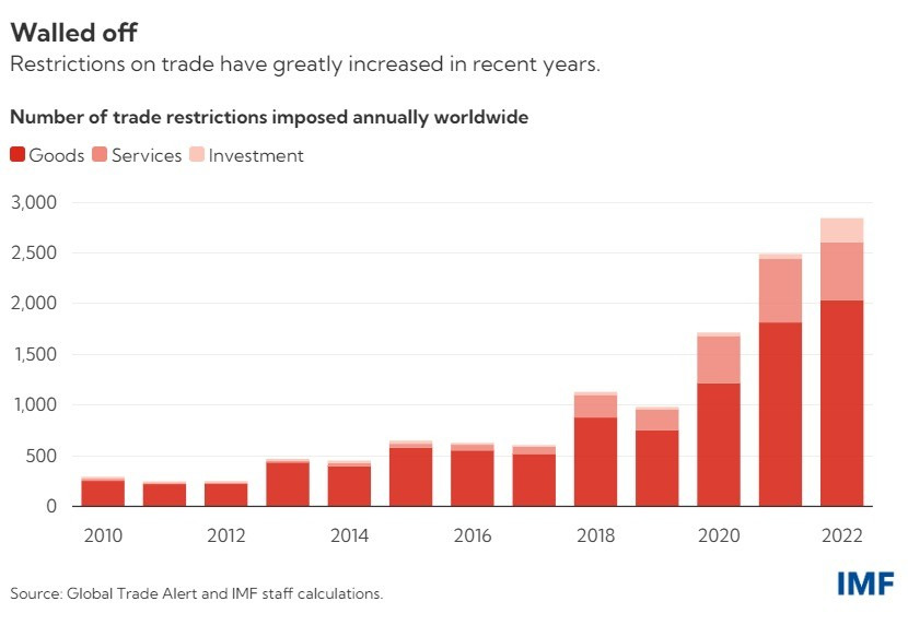 무역이 단절되는 가운데 공공부채가 세계 총생산(GDP)의 100%(2030년 예상치)까지 늘어나면 “세계 경제는 저성장과 높은 부채의 경로에 갇히게 될 것”이라는 게 그의 전망이다. 그는 지난해 ‘분열의 비용’이라는 포린어페어스 기고문을 통해 ”무역 분열은 세계 GDP를 최대 7%(현재가치 기준 7조4000억달러)까지 감소시킬 수 있다”고 지적했다.