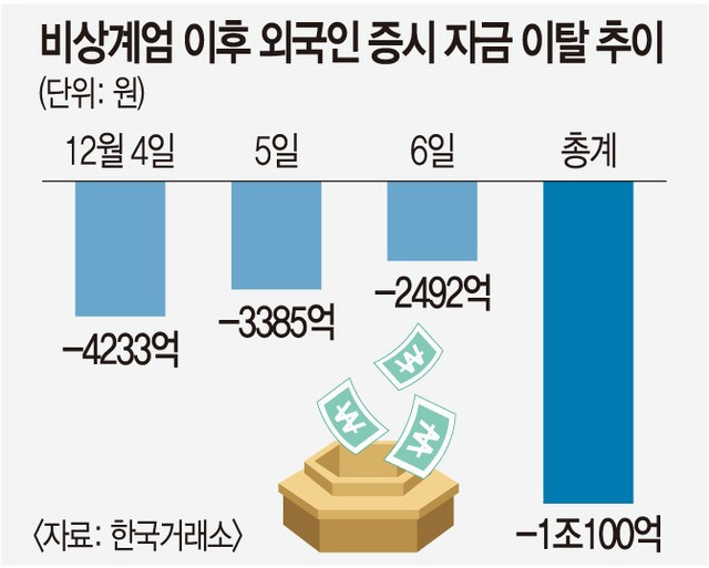 계엄 폭탄’ 맞은 외국인, 사흘새 한국주식 1兆 팔아치웠다