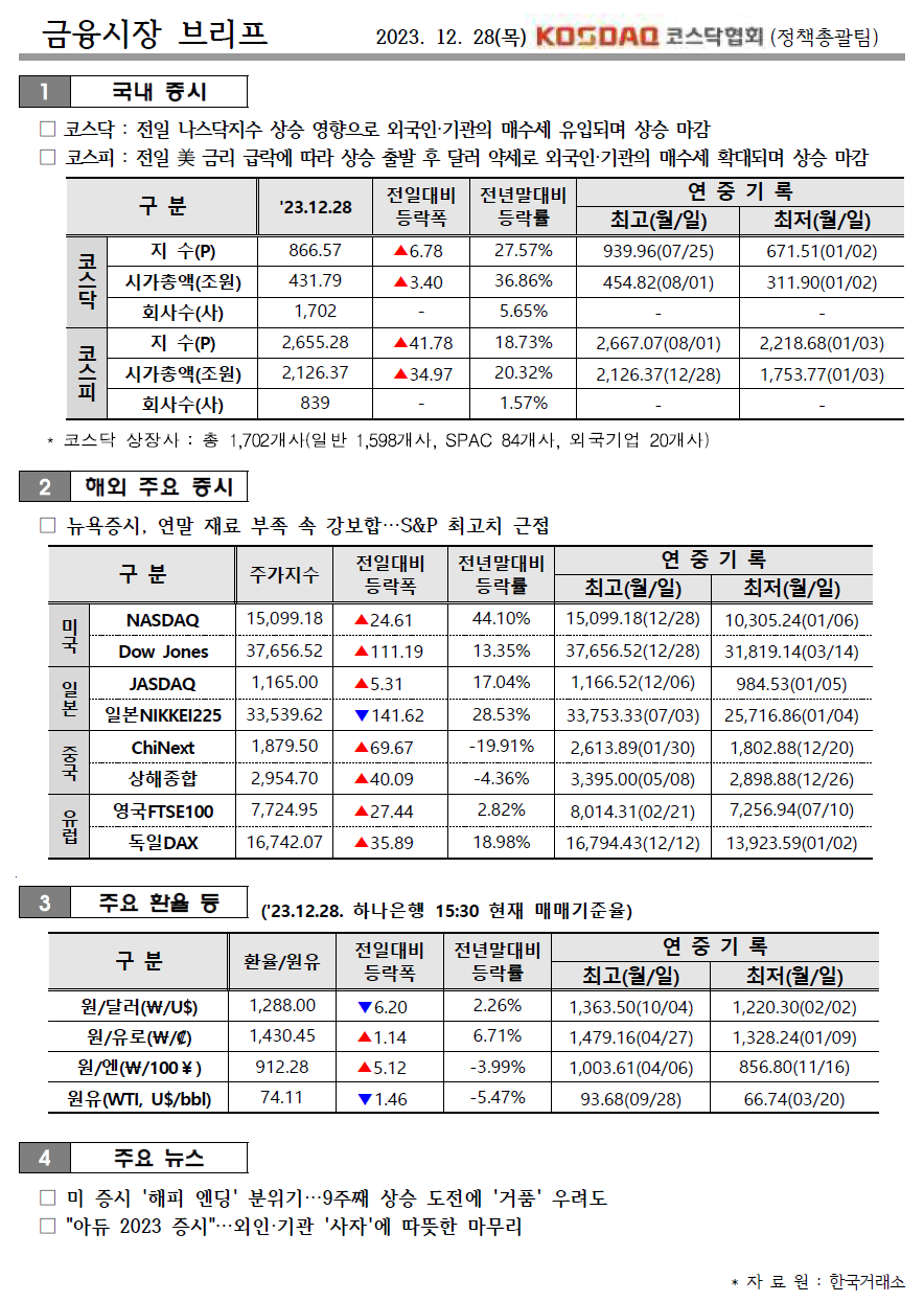 2023.12.26(화) 금융시장 브리프 입니다.