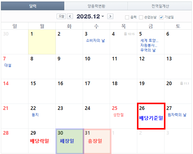 주식하면서, 많이들 궁금해하실 2025년 배당락, 폐장일, 개장일에 대해 알려드리고자 합니다!!