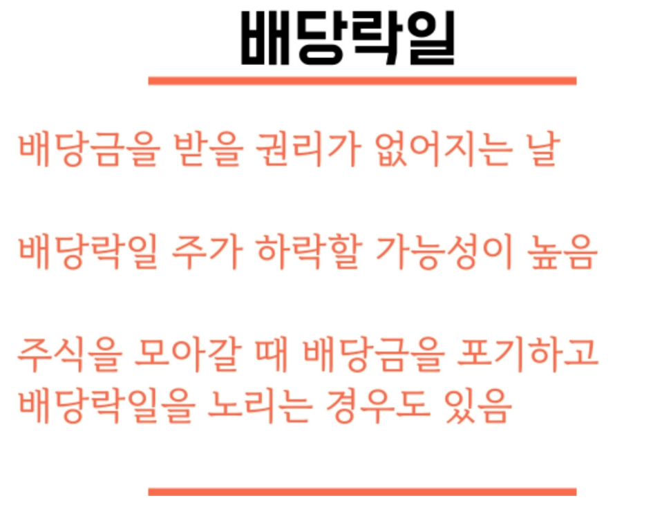그렇다면 배당락일이라는 건 무엇일까? 배당락일은 배당기준일이 지나 배당금을 받을 권리가 없어지는 것을 말합니다.