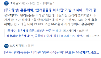 ③ 유유제약, 실적 반등 + 반려동물용 비타민 개발 소식에 진단키트주 강세