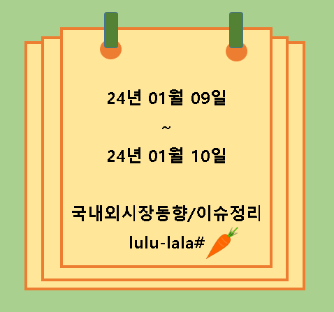 24년 1월 9일(화) ~ 24년 1월 10일(수) 국내외 시장 및 주요 이슈사항