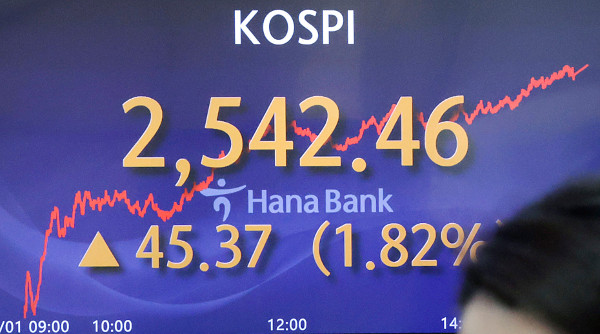 1일 한국거래소에 따르면 코스피는 전 거래일보다 1.82% 오른 2542.46에 마감했다. 올해 들어 가장 큰 상승 폭이다. 반대로 코스닥은 전 거래일보다 0.06% 하락한 798.73에 거래를 마쳤다. 올해 들어 코스피가 4.77% 하락하는 동안 코스닥은 9.12% 하락했다. 밸류업 정책 기대감에 코스피가 하락폭을 축소해나가는 동안 코스닥은 오히려 부정적 영향을 받으며 두 지수의 차이가 벌어진 것이다.