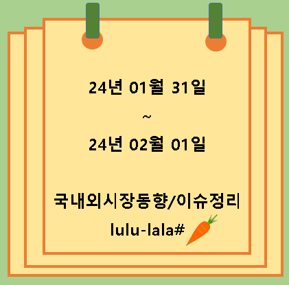 24년 1월 31일(수) ~ 2월1일(목) 국내외 시장 동향과 이슈사항 확인하시고, 투자에 도움이 되었으면 좋겠습니다.