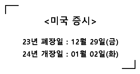 오늘은 국내·미국 증시 23년 12월 폐장일과 24년 1월 개장일에 대해 공유드리고자 합니다.