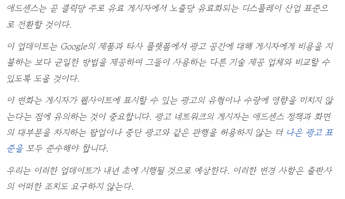 바로 오늘 주제인 "애드센스 수익 지불 방식 CPC(클릭당 비용) → CPM(노출당 비용)으로 변경"하는 내용입니다.