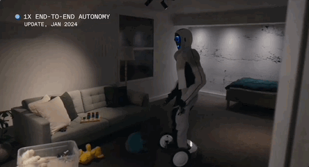 영상을 보면 로봇들은 자유롭게 정해진 업무를 소화하고 있다. 상자를 옮기거나 정해진 위치에 물건을 두는 기본적 작업을 무리 없이 수행한다. 사무실 손잡이를 잡고 문을 여는 모습도 인간과 크게 다를 바 없을 정도로 자연스럽다. 1X는 "원격 조작이나 컴퓨터 그래픽(CG) 작업을 하지 않은 영상이다. 빨리 감기 없는 실제 속도"라고 설명했다.